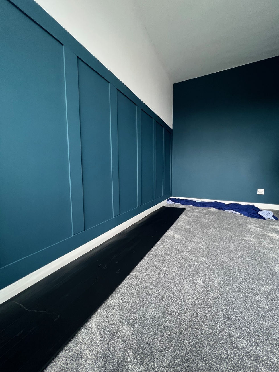 This was a home project that I did over the summer of 2023 as something that was a simple change/addition to a room but effective by adding a bolder colour- but having dimension and texture to it by having the panelling.